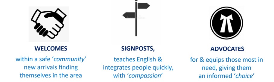 Our vision is to create a community where everyone feels truly welcome. We work to orientate newcomers with compassion, providing vital information and support to help them to rebuild.